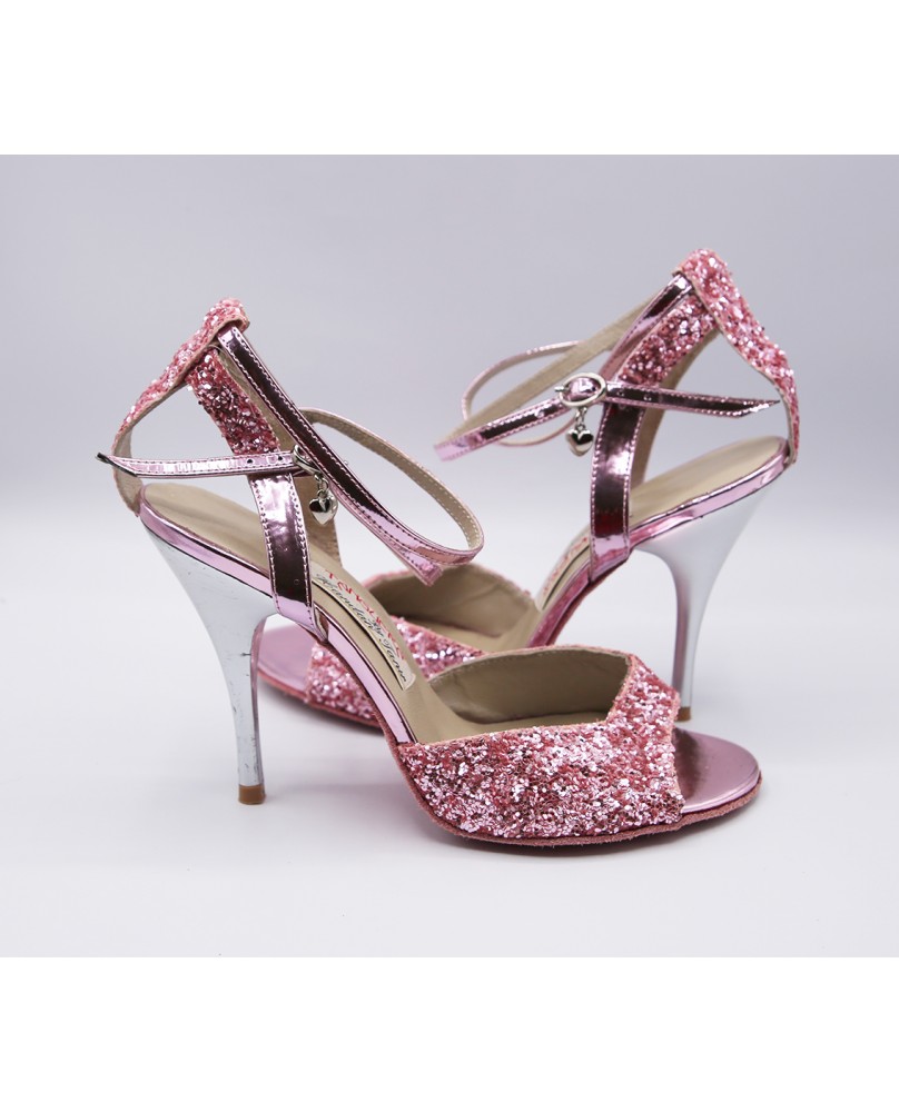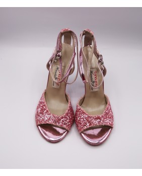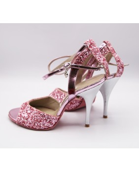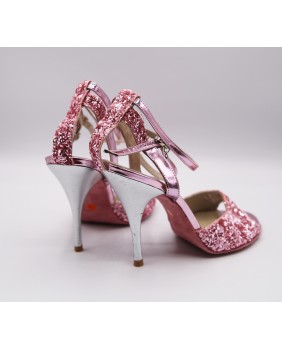 Beautiful and original model created by Handan Tanir with a large T strap at the back of the shoe. Light pink glitter and mirror patent compose this model with special 9 cm mat silver heel like on photos. Also available in 7 cm, 8 cm and 9 cm. Can be manufactured in all glitter and patent colors.