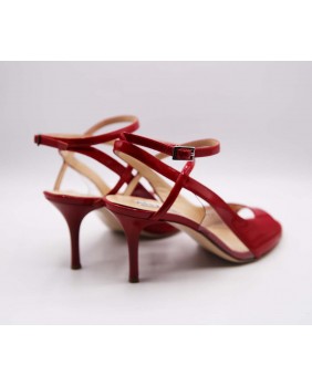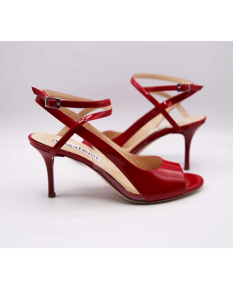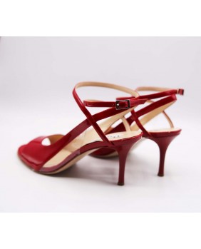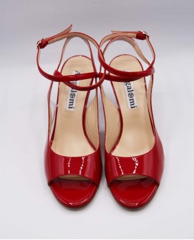 The Diva model is an original and exclusive style from the Alagalomi brand. Beautiful, elegant, and very feminine, it is available here in red patent and PVC on the side with an original cutout. The matching shinny heel enhances this model.