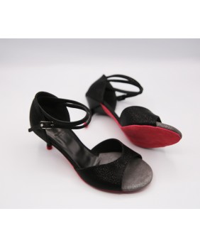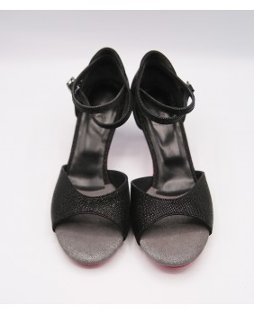 The MF021 is a basic style with an open toe and a closed cage, featuring a double-wrapped strap (either around the ankle or the toe). It's crafted here in matte black patent leather with small, fine checks. To add a touch of originality, it features a pink sole and matching heel caps for a bit of pep, contrasting with the black 5 cm heel. This model is available in all colors and materials, and there are over 20 different polishes, including several mirror polishes. Four heel heights are available: 5 cm, 7 cm, 8 cm, and 9 cm, as well as three sole types: suede (the softest and can be colored), semi-rigid, and leather.