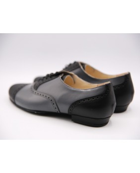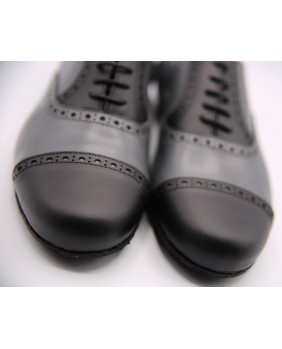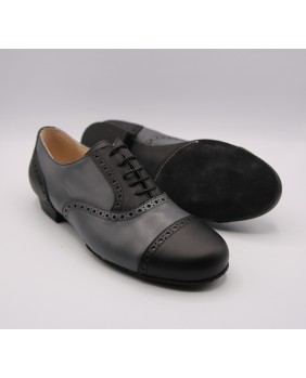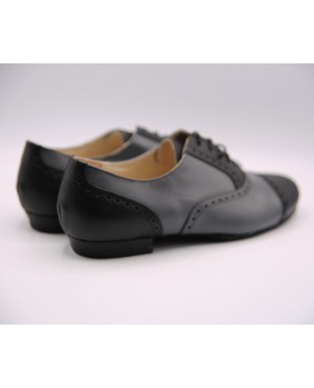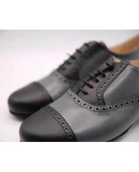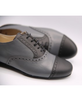 Beautiful grey and black rockabilly style model in leather with nice cuts and holes along sewings. Available in suede or leather sole. Black suede sole on photos. This model can be manufactured and any color or material with or without holes.