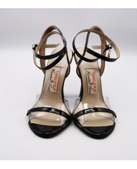 Model in black patent and transparent soft material that reveals the whole foot. Black sole and shinny black heel of special 9 cm on photos but available in 7 cm, 8 cm and normal 9 cm. This model is declined in all patent colors and transparent material and can be edged like our NT015 model.
