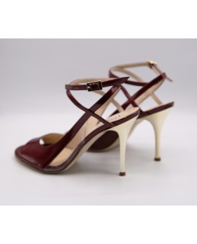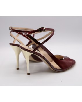 The Diva model is an original and exclusive style from the Alagalomi brand. Beautiful, elegant, and very feminine, it is available here in Pearly burgandy patent leather and PVC on the side with an original cutout. The shiny gold heel enhances this model.