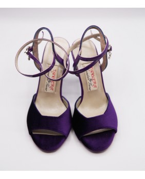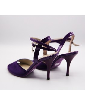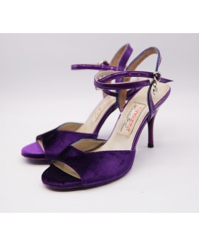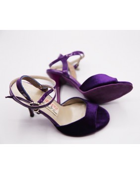 Classical shape with open front in purple velvet with long double position strap. Back and strap made of purple patent and a purple sole for a total look purple. 8 cm purple heel on photos but also available in 9 cm, special 9 cm and 7 cm but black heel. Available in all velvet and patent colors.