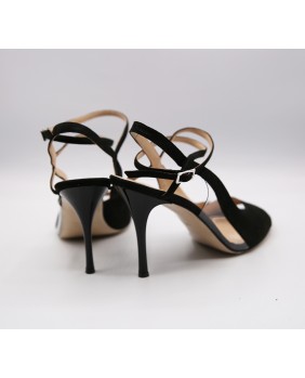 Le modèle Diva est une forme originale et exclusive de la marque Alagalomi. Magnifique, élégant et très "femme", il est ici décliné en cuir noir brillant et PVC sur le côté avec une découpe originale. Le talon noir brillant sublime ce modèle.