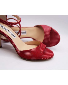 Tissu rouge à pois et talon couvert