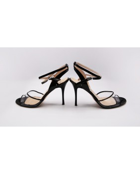 Magnifique modèle Maia en PVC transparent et vernis noir. Un matériau très original avec une belle élasticité. Arrière ouvert et bride double tour pour ce modèle classique et élégant avec un talon noir brillant.