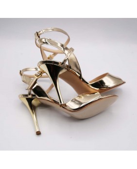 Magnifique modèle Maia en vernis miroir doré clair. Un matériau très lumineux et brillant dans lequel vous pourvez vous voir ! Arrière ouvert et bride double tour pour ce modèle classique et élégant avec un talon doré miroir.