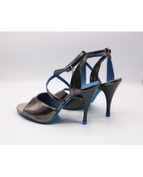 Cuir anthracite brillant et intérieur bleu