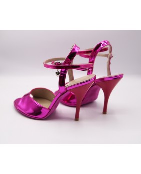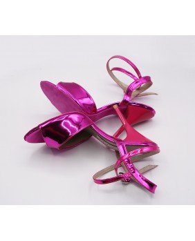 Un modèle très "girly" entièrement fabriqué en vernis rose miroir avec un talon rose assorti et une semelle rose aussi évidement. Bride double position soit autour du pied, soit autour de la cheville. Existe dans toutes les couleurs de vernis dont de nombreux vernis miroir. Talon de 7 à 9 cm disponibles. (Attention en 7 cm le talon est moka, doré, argent, cuivré ou noir)