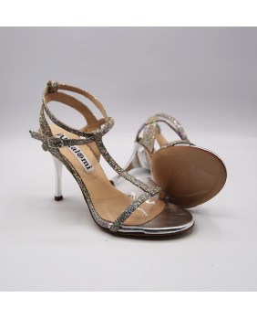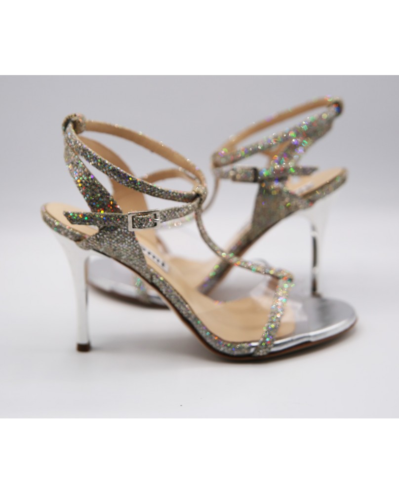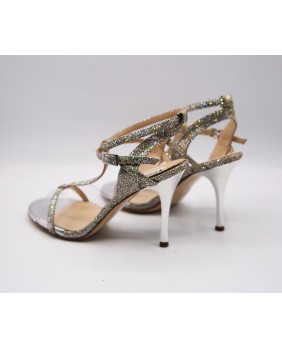 Magnifique modèle Sissi en cuir pailleté argent irisé brillant. Arrière ouvert et bride double tour pour ce modèle classique et élégant avec un talon argent miroir. Semelle en cuir ou en daim au choix et disponible dans toutes les hauteurs de talon du 5 au 9 cm.