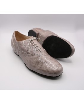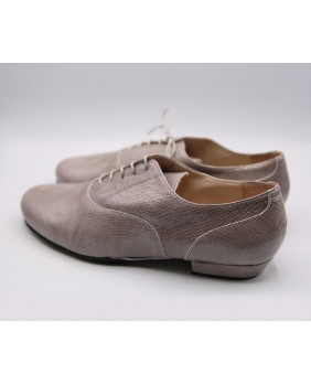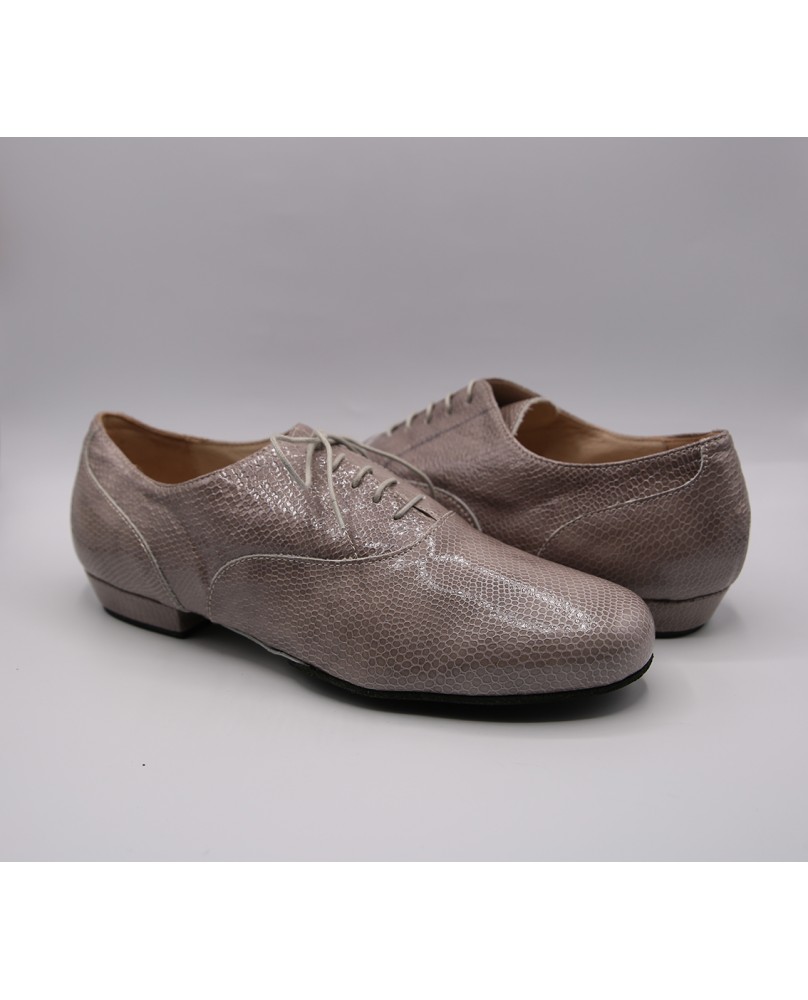 Modèle entièrement en cuir imitation lézard gris clair, découpes élégantes et semelle en daim noir. Disponible également avec une semelle en cuir. Modèle très sobre et classique, disponible dans toutes les couleurs de cuir et de daim.